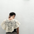 La Mañanita Ilsa se teje en plano utilizando los dos hilados: la alpaca y el mohair. Empezamos por el cuello, tejiendo un cordón que servirá para atarla, después realizamos el cuerpo que irá creciendo gracias a los aumentos, que también van a darle volumen. Hacemos vueltas cortas para darle más longitud en la espalda. Por último, levantamos los puntos de los delanteros y finalizamos con un iCord en todo el contorno.